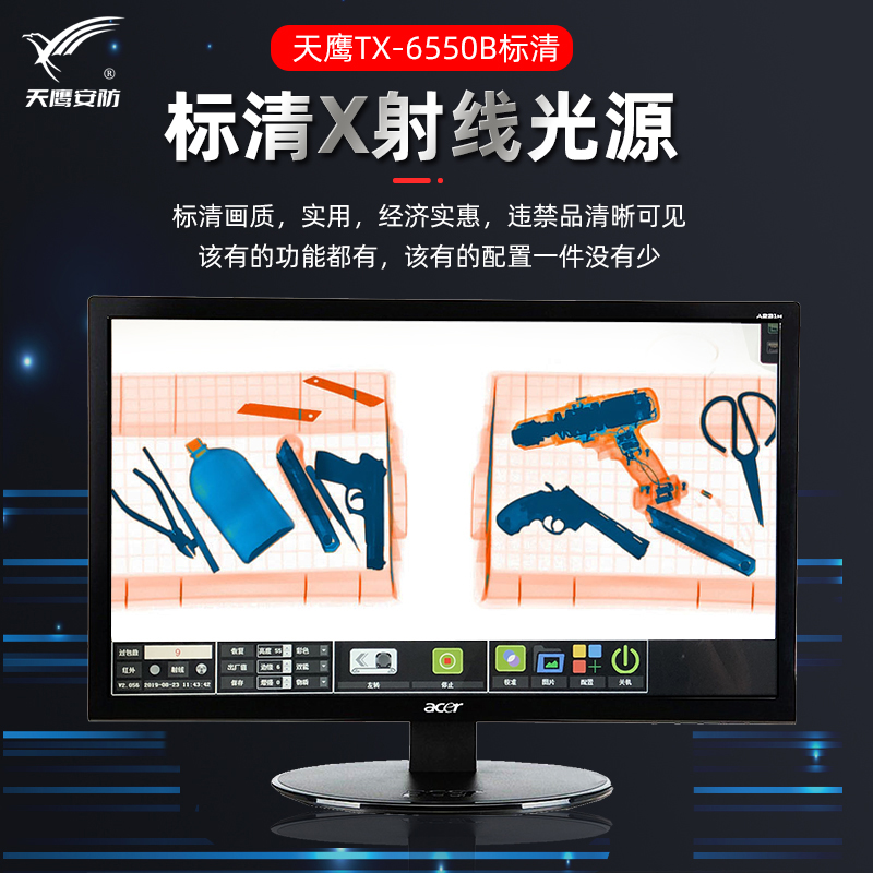 產品工藝:通道尺寸一般廠家生產的此通道尺寸的安檢機大0.5CM,這樣讓剛好是65CM的包能順利通過。且采用雙層加厚鉛簾起到更好的防輻射效果,天鷹每一臺安檢機出廠前均做輻射達標檢測,確保每一臺安檢機出廠前輻射標準均在國標范圍內。